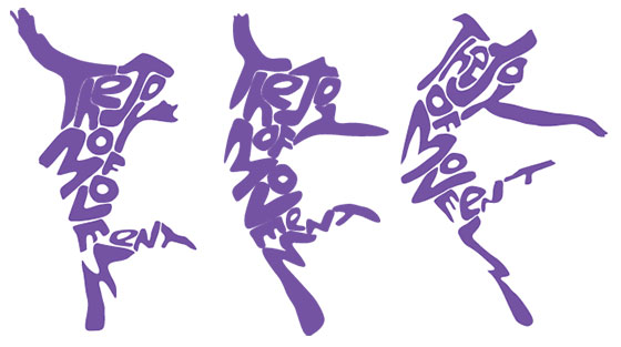 The image of the revolving door with the Glass Dancers employs hand-drawn lettering customized to fit within the shapes of the three figures of dancers. The same dancer has been altered so that the frames are in the form of motion key frames. If someone were to stand back from the doors and observe the moving panels, the figures should appear to move slightly in a dancing loop.