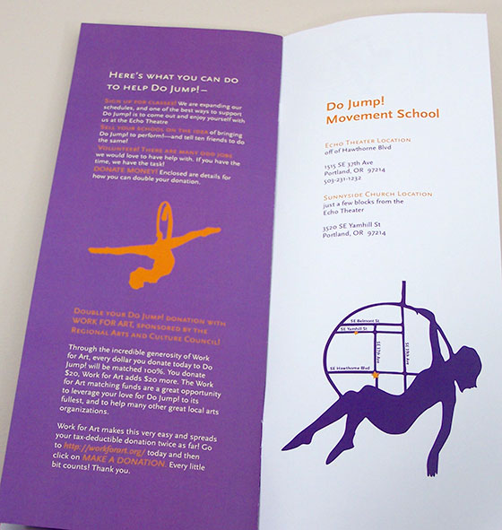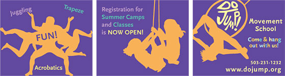 This local nonprofit needed a new logo and promotional campaign. The logo is accompanied by a brochure with information about their classes and other programs, a mock-up for a new home page, banner advertisements, and the storyboard for a public service animation, which can be seen here.