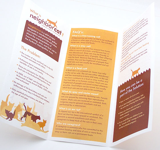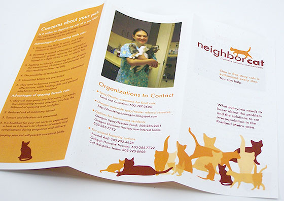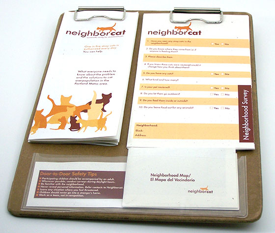 The overpopulation of free-roaming domestic stray and feral cats is a huge problem, particularly in cities. In response to this, Neighborcat is a pilot project designed to simultaneously gather information and provide education about the overpopulation problem in the Portland Metropolitan Area by utilizing grassroots involvement at the neighborhood level.