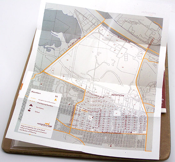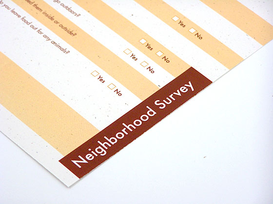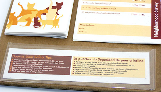 The kit is composed of a clipboard holding a survey pad, a neighborhood map for orientation, informational brochures and safety instructions for door-to-door surveys. There is also an identification badge and a magnet for volunteers to keep at home.The online portion of the project can be viewed here.